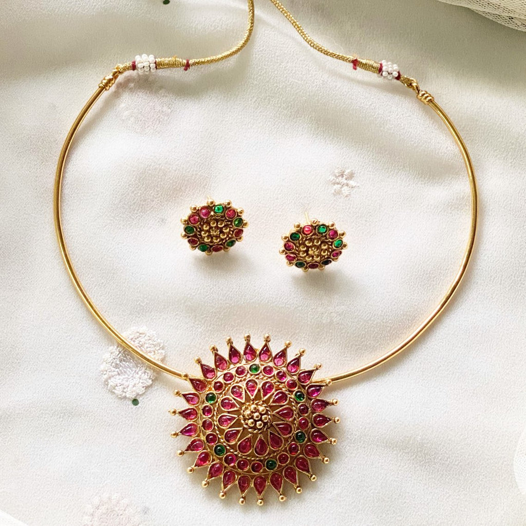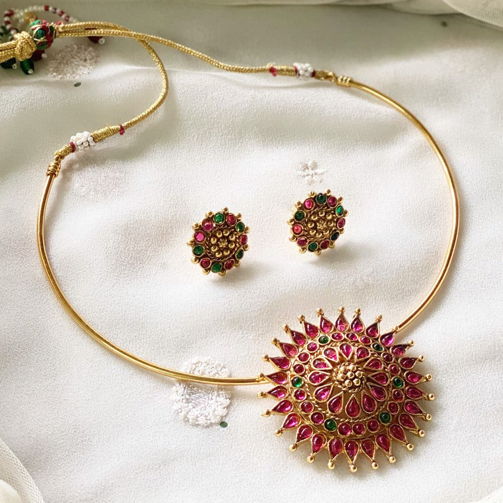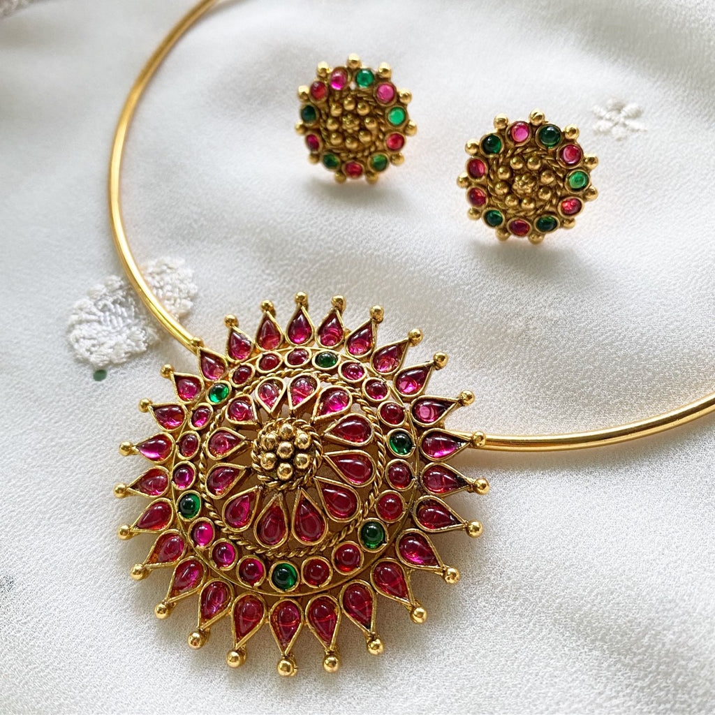 GN0643Ruby with green Chakra pendant pipe set with matching earrings.