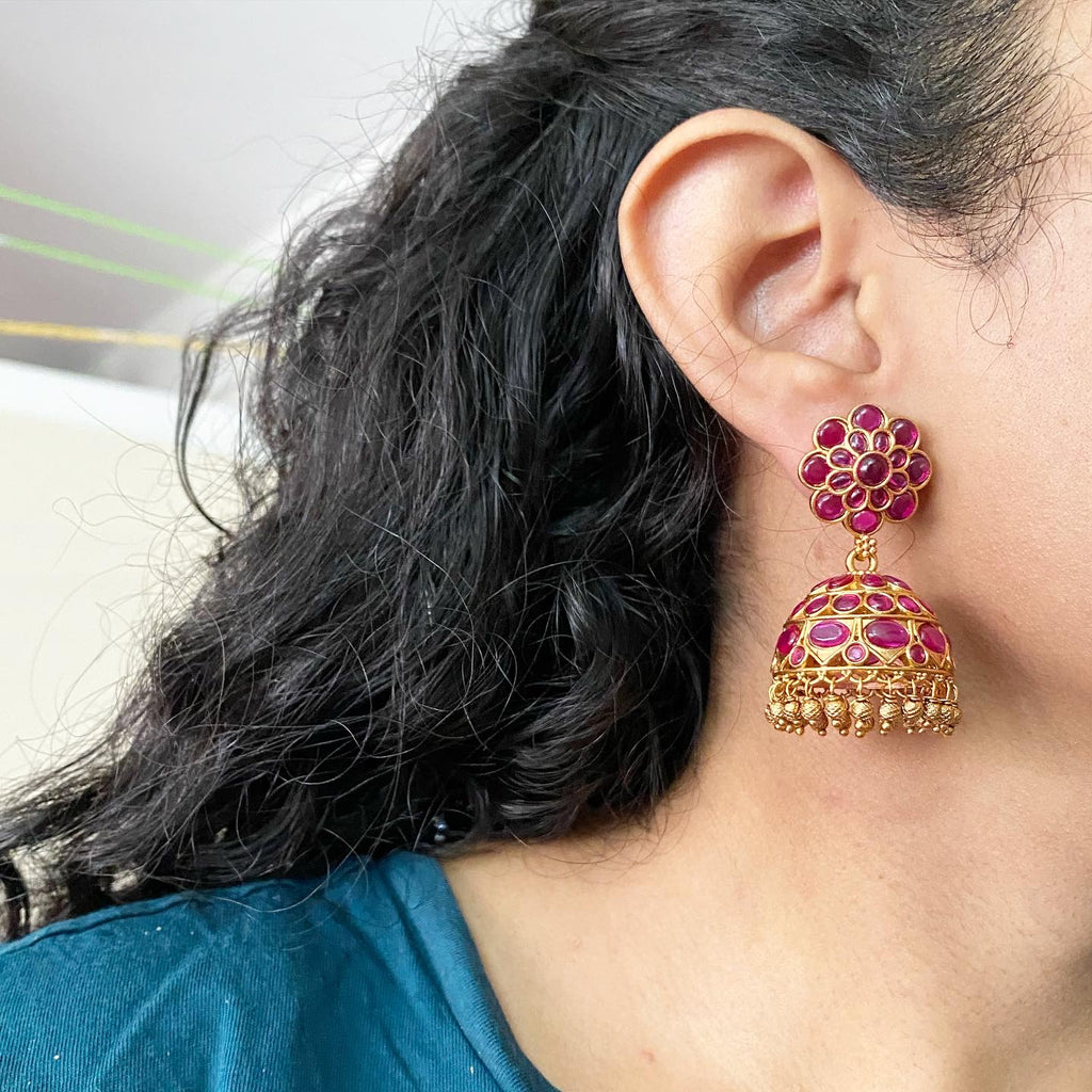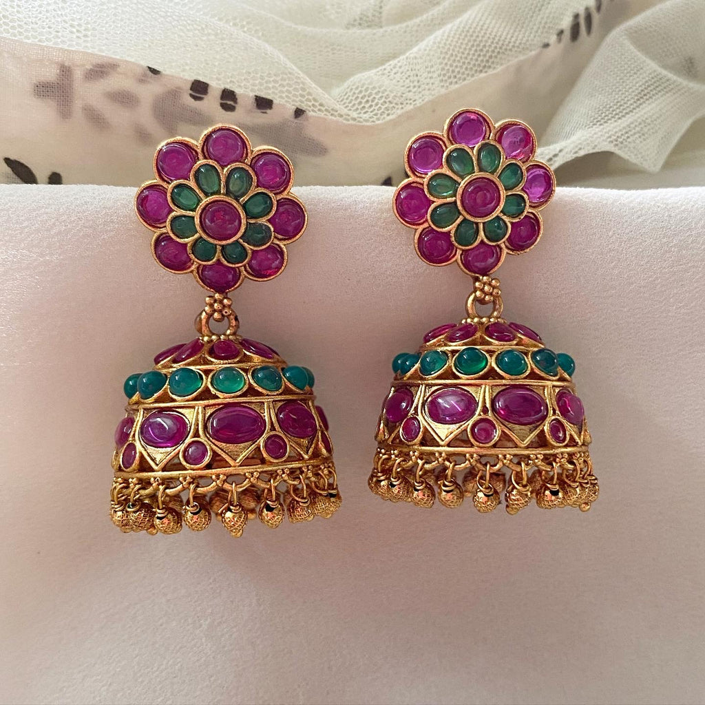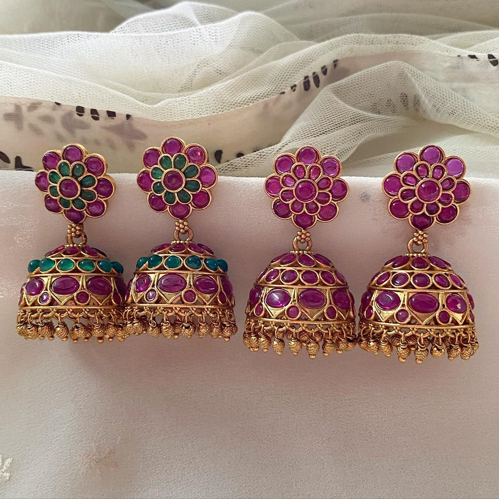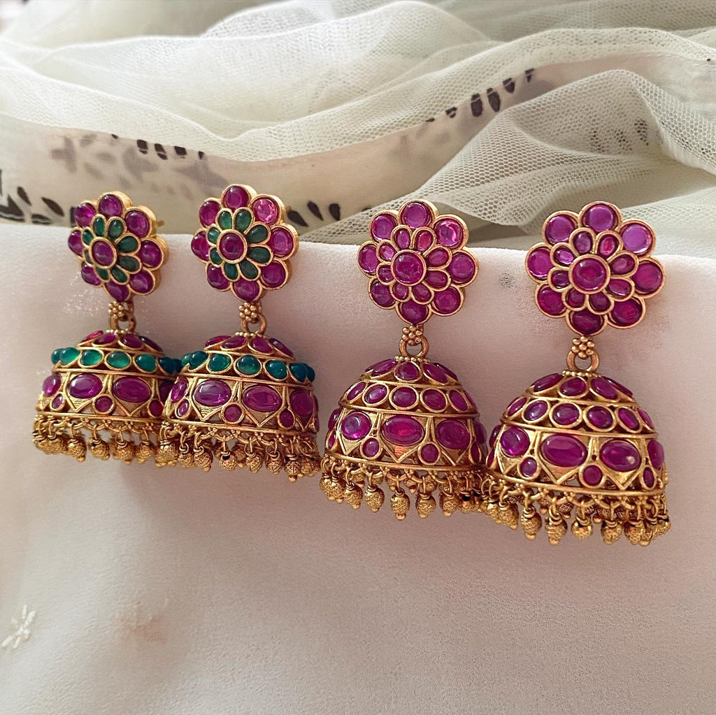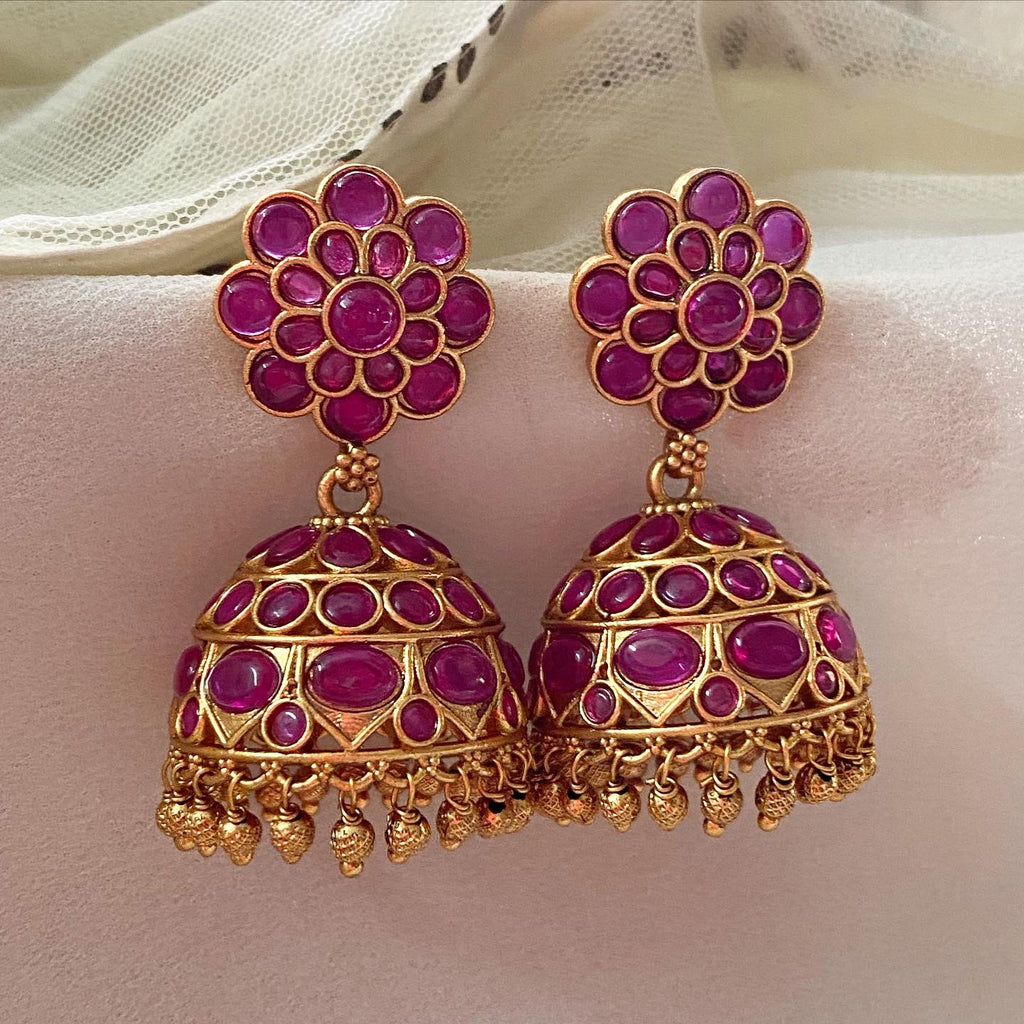 Premium quality matte finish, kemp studded jumkha with gold bead drops.
