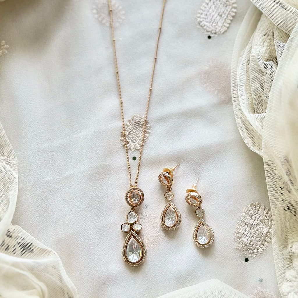 Polki tear drop pendant neckset (single strand chain)